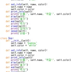 객체 지향 프로그래밍 (objective-oriented programming) -실 세계의 사물을 객체(Object)로 추상화하여 객체 간의 상호 작용을 기반으로 프로그래밍 하는 방법이다. 객체(Object) 1. 객체는 명사로 정의되는 자신의 특성(변수)과 동사로 정의되는 자신의 기능(메서드)을 가지고 있다. 2. 객체는 상속을 통해 기능을 확장할 수 있다. 위 세대의 기능을 물려받고 나만의 기능을 추가할 수 있다. 3. 외부에서 의도하지 않은 내부 데이터 변경을 막기 위하여 캡슐화를 할 수 있다. 4. 객체의 기능은 재 정의(Override) 할 수 있다. 클래스(Class): 똑같은 무엇인가를 계속해서 만들어 낼 수 있는 '틀' 클래스의 선언 class 클래스명: 클래스의 인스턴스(instance..